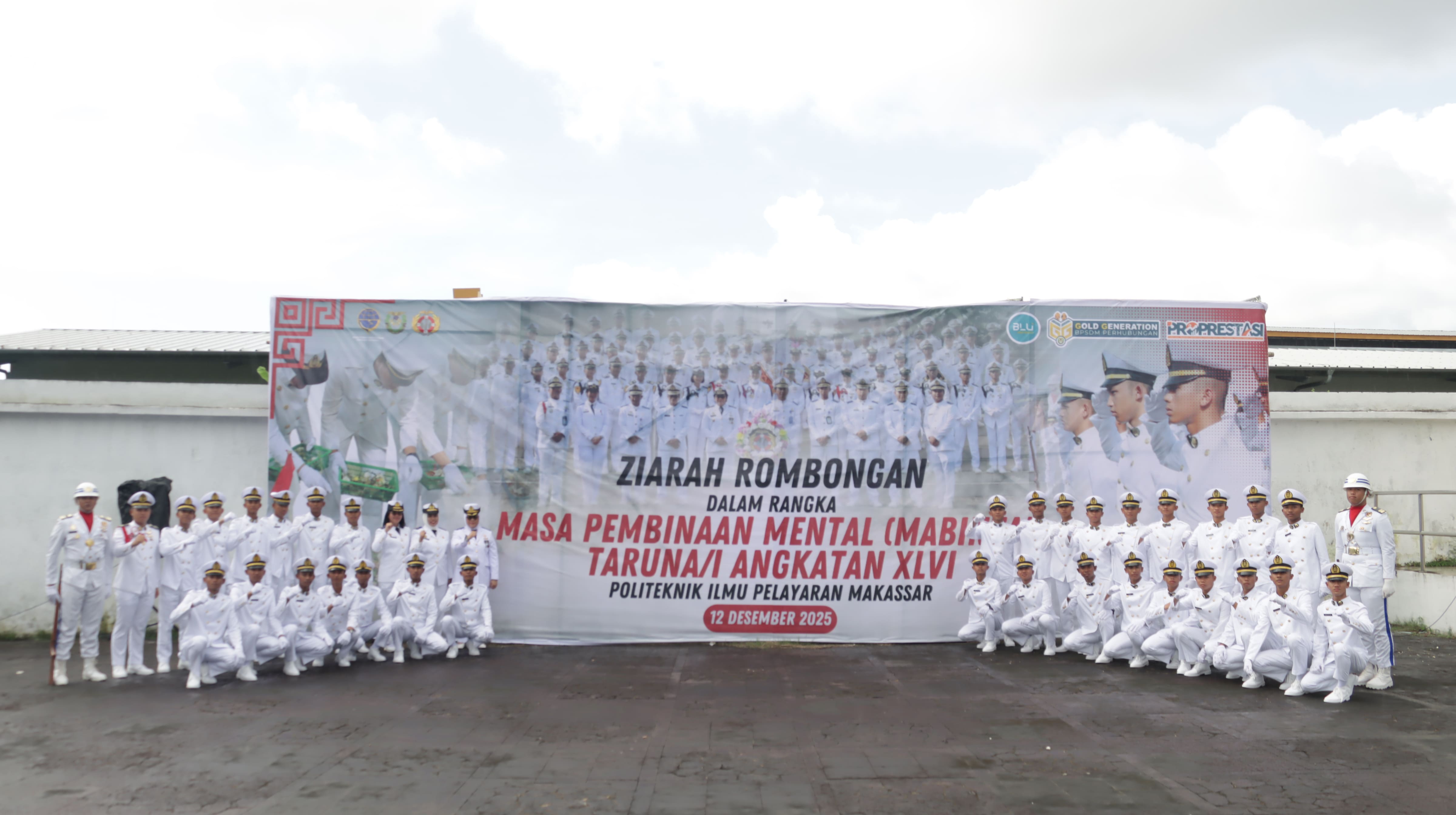 Updated on December 12, 2025Makassar, 12 Desember 2025 - Politeknik Ilmu Pelayaran (PIP) Makassar melaksanakan kegiatan Upacara Ziarah Taman Makam Pahlawan yang bertempat di Taman Makam Pahlawan Panaikang, Makassar. Kegiatan ini merupakan bagian dari pembinaan mental, moral, dan kesamaptaan bagi Calon Taruna Angkatan XLVI Tahun 2025.